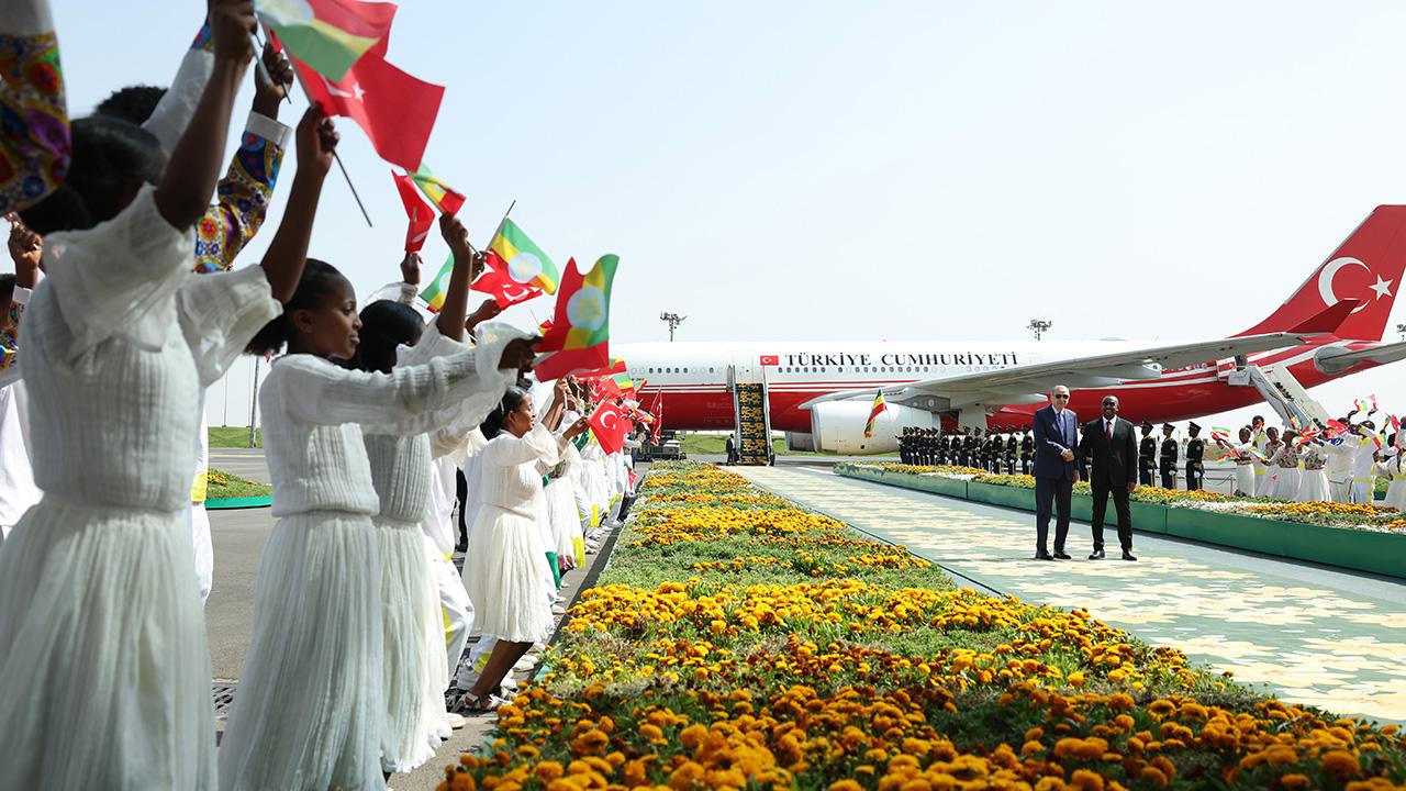 Cumhurbaşkanı Recep Tayyip Erdoğan, resmi ziyaret için gittiği Etiyopya’nın başkenti Addis Ababa’da Etiyopya Başbakanı Abiy Ahmed tarafından resmi törenle karşılandı.